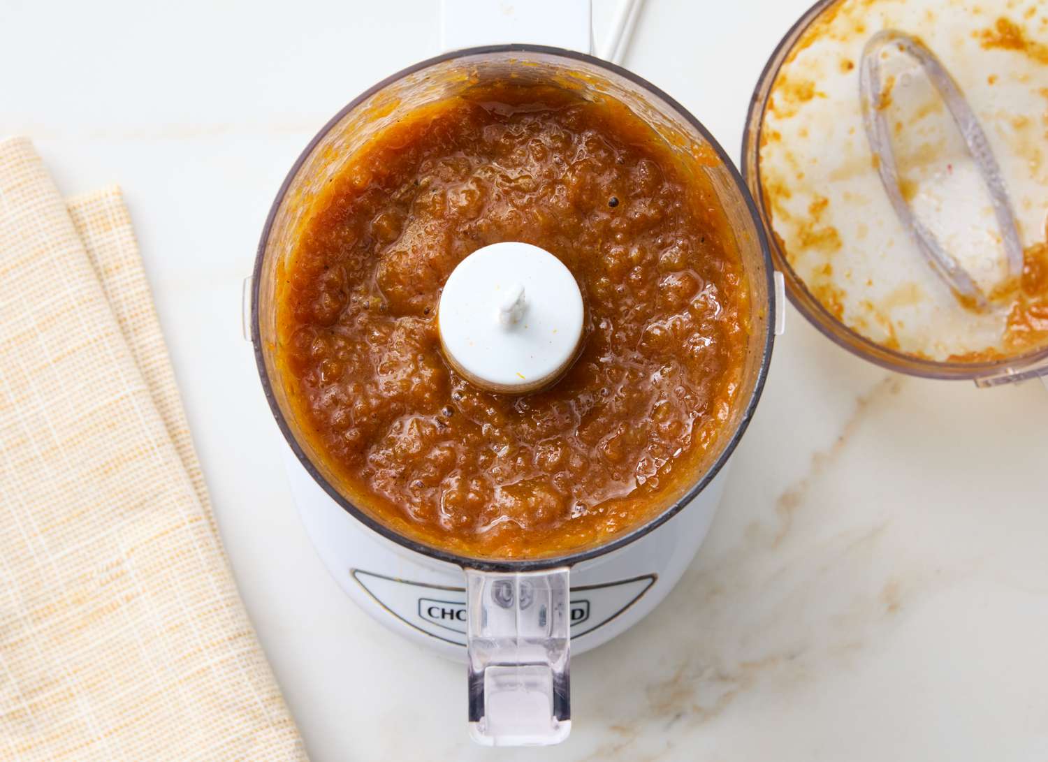 Add to a food processor. Cover and process until very finely chopped and mixture is a spreadable consistency.