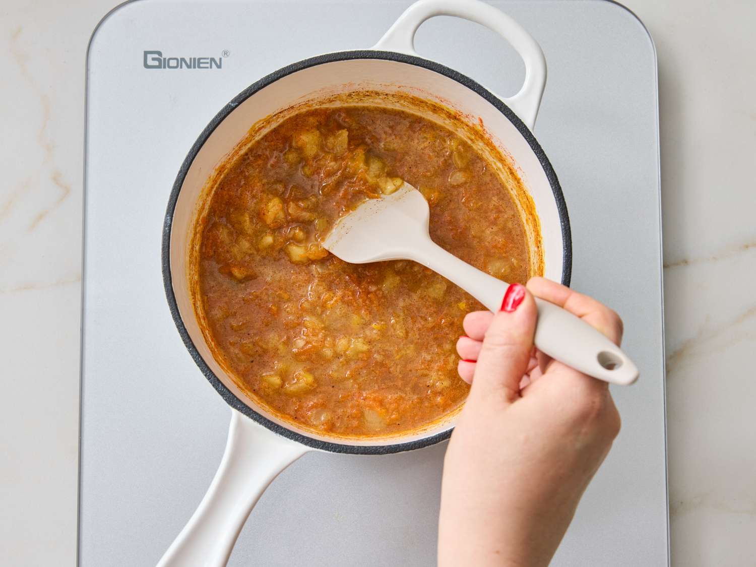 Continue to simmer, stirring occasionally, until most of the liquid has evaporated, 20 minutes. Remove from heat and let stand to cool slightly, 10 minutes.